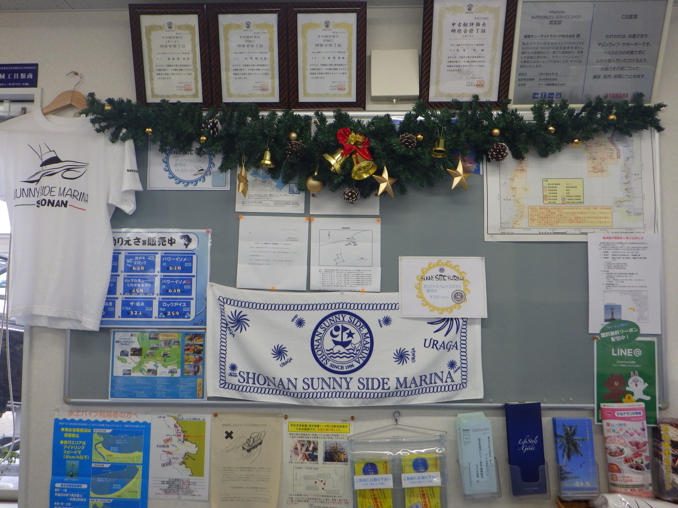 マリーナ内も、クリスマスの飾り付けをしました。
