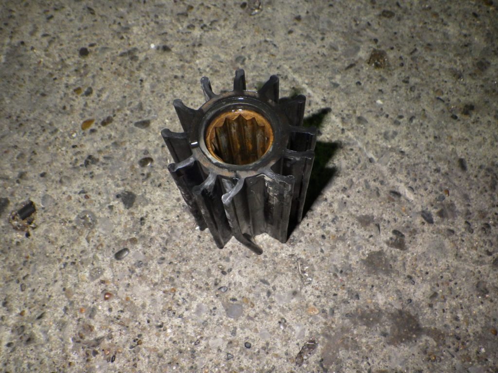 この船は、よくメンテナンスしてありますが、何年もメンテナンスをしていない船では、インペラーの羽が何枚か切れてしまっていることがよくあります。