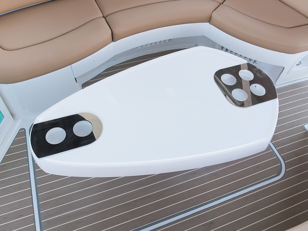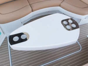 中央にドリンクホルダー付きの大型テーブルを用意、洋上パーティーでも大人数での食事を楽しむことができます。