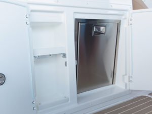 水面へのエントリーに便利な、トランサム中央にレイアウトされたステップ。