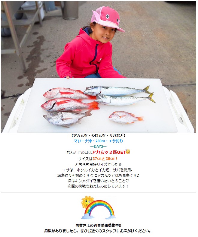 皆さまこんにちは ☆*゚ ゜゚*☆ 最近の釣果情報をお届けいたします ☆*゚ ゜゚*☆