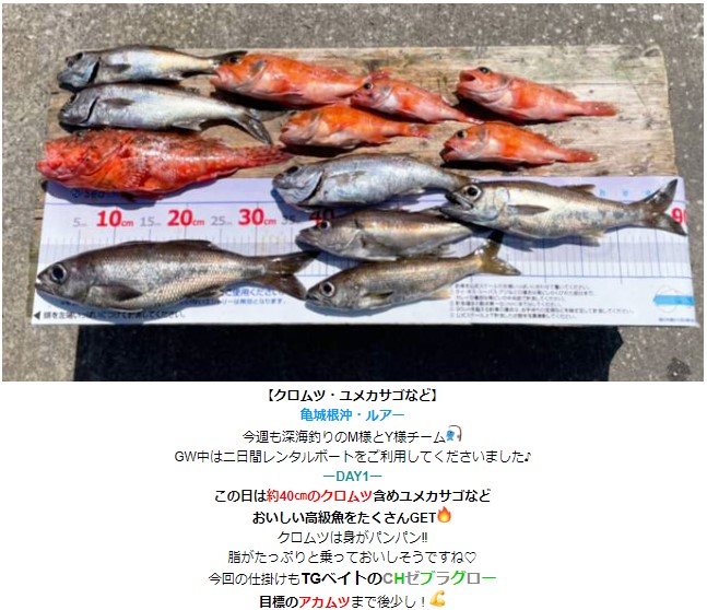 GW後半は天気が回復し、 根魚に深海魚とさまざまな魚が釣れました♫