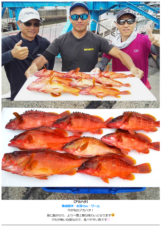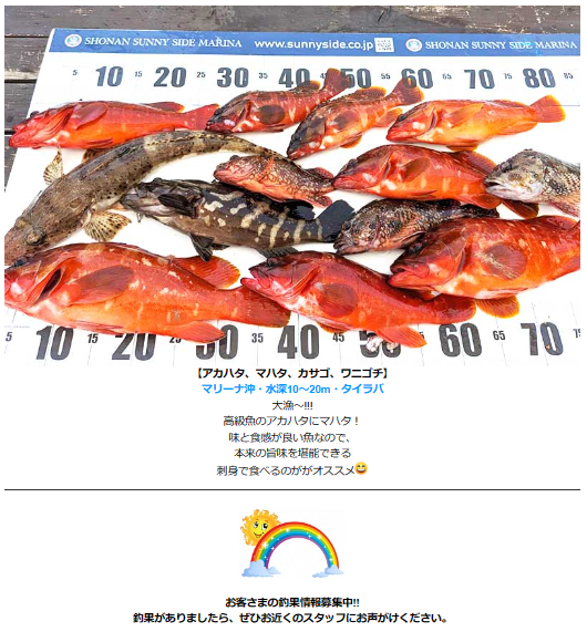 色鮮やかな赤が映える釣果となりました! 超高級魚のマダイやブリも釣れてます◎