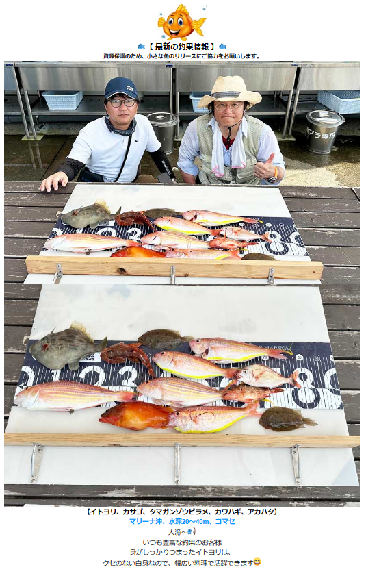皆さまこんにちは ☆*゚ ゜゚*☆ 最近の釣果情報をお届けいたします ☆*゚ ゜゚*☆