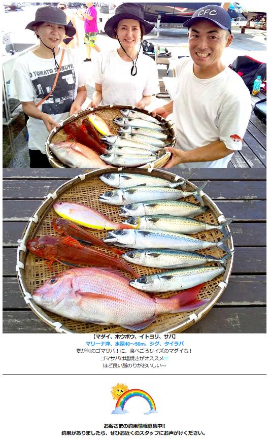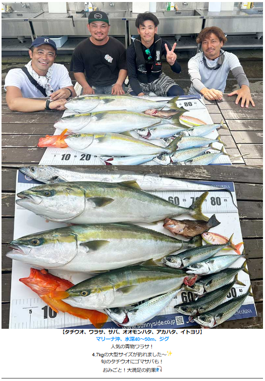夏の終わりが近づく最近では、マダイやタチウオ、カンパチ、ワラサなど さまざまな美味しい魚が釣れました👏