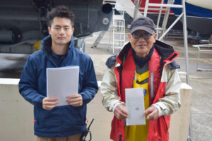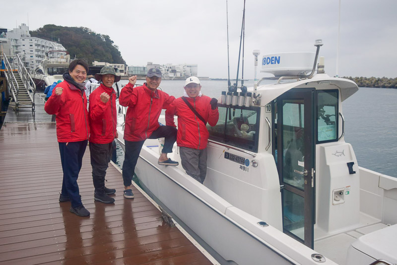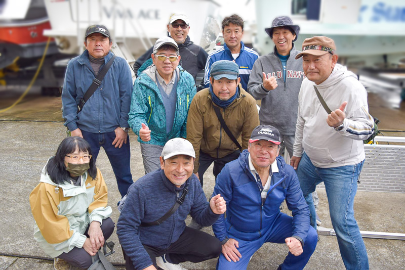 当日の天候は生憎の雨。しかし、出航前の写真撮影を行っていると、皆様『釣ってくるぞ!』とガッツポーズを見せてくれました☔🔥