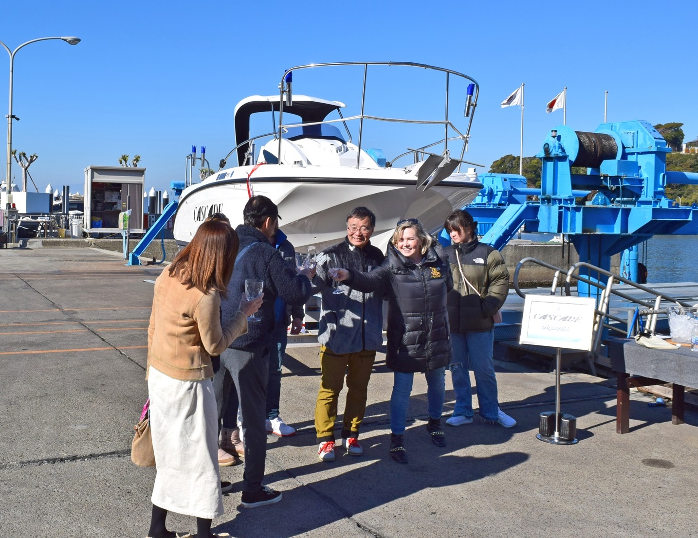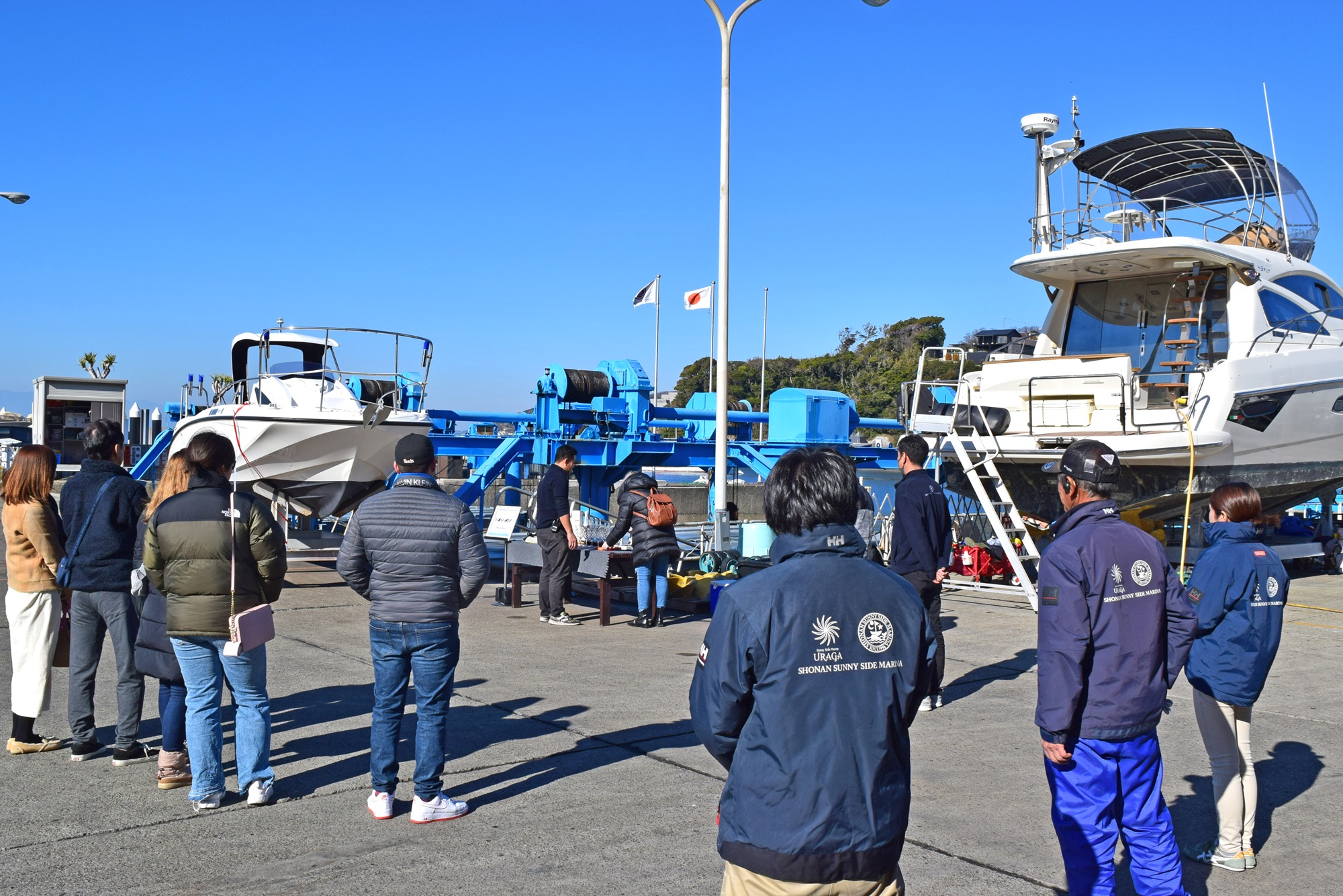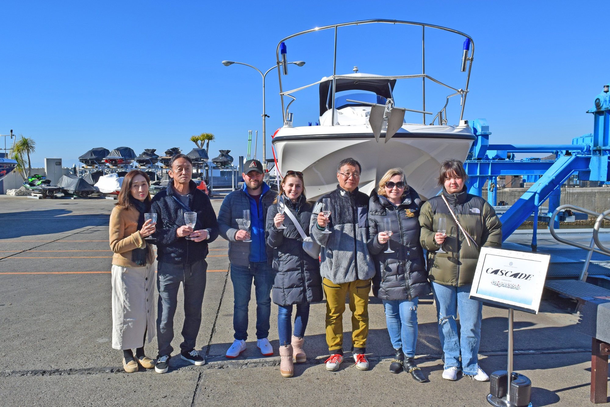 進水式には、マリーナスタッフのほかに、ご家族ご友人の皆さまがご参加くださいました。