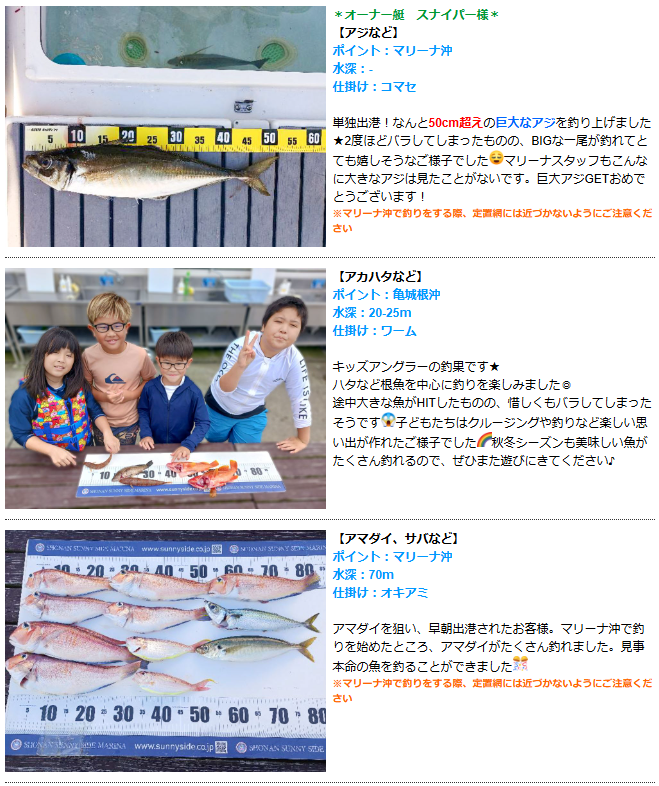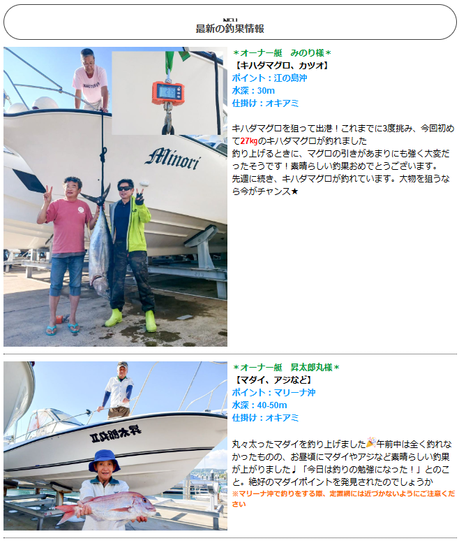 ☆*゚ ゜゚*☆ 最新の釣果情報をお届けいたします ☆*゚