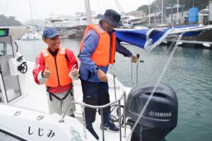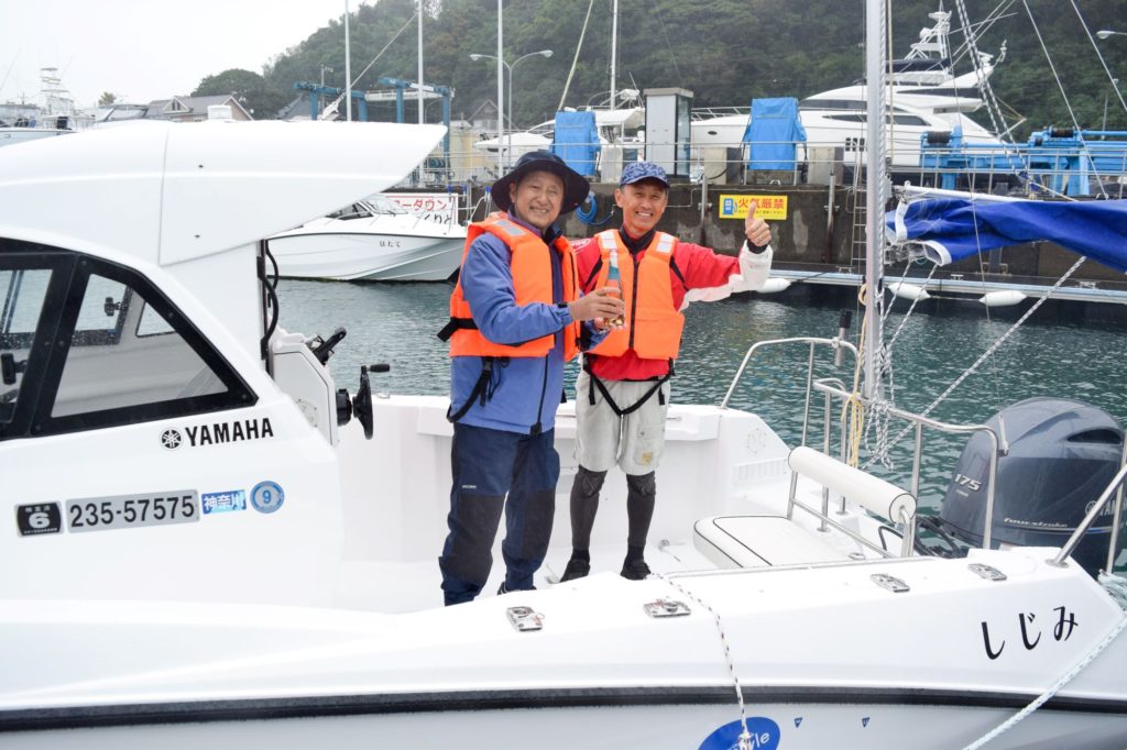 船の点検を行ったあと、これからの安全を祈願して、お酒でお清めを行いました♪
