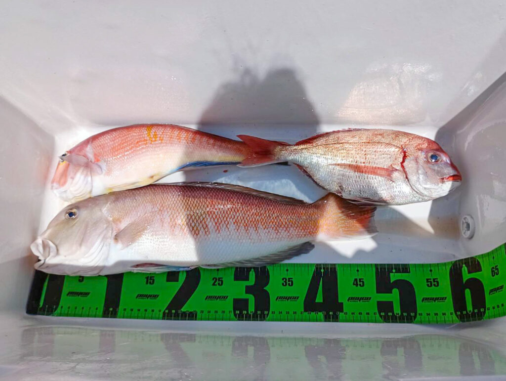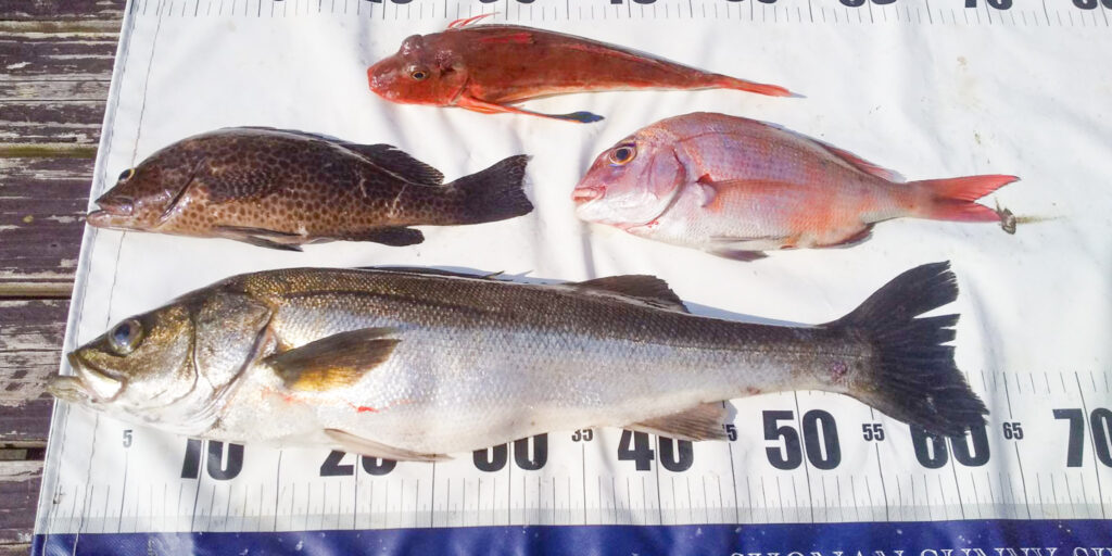 60cmを超える大きなスズキをはじめ、オオモンハタやマダイも釣れました!どの魚も立派なサイズで、見ごたえのある素晴らしい釣果となりました