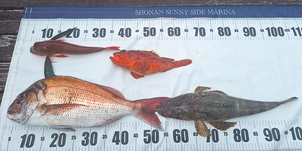単独出港されたお客様の釣果です。今回が初めてのマリーナご利用でしたが、「いろいろな魚が釣れて良かった!」と、嬉しそうに話してくださいました♪