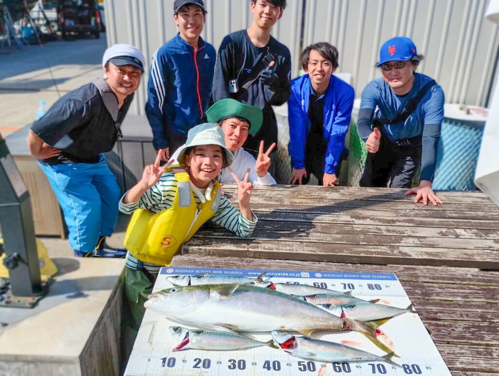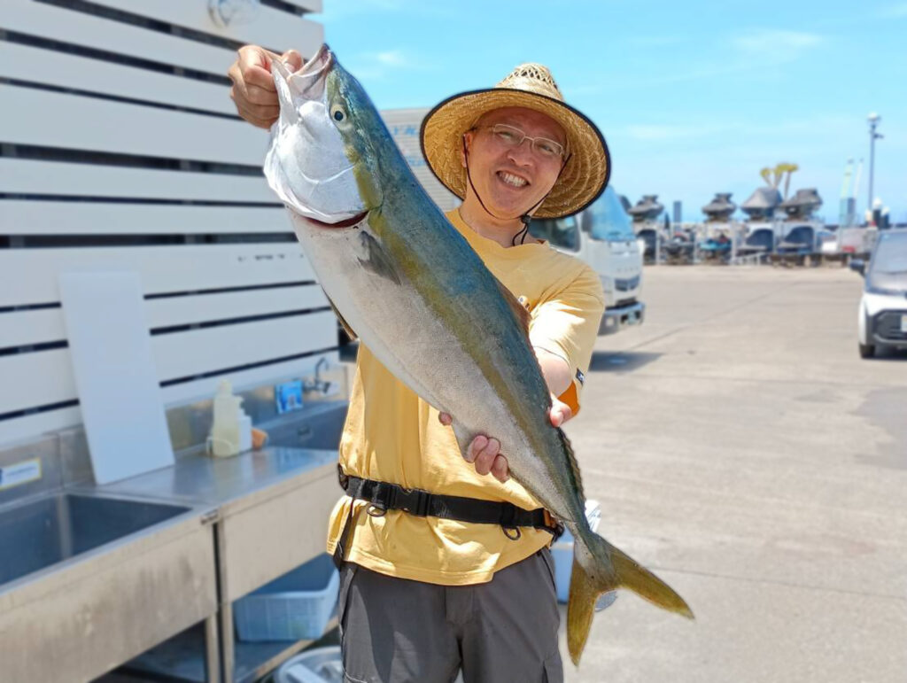 こちらも同じ日にブリをGET!この日は、マリーナ沖から亀城根沖にかけてブリが回遊していたようです。帰港後には、釣り上げた魚と一緒に記念撮影📷!素晴らしい釣果、おめでとうございます♪