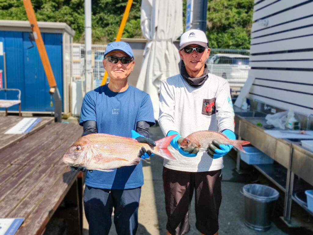55cmのマダイを含む2尾をGET!使用したのは、80gの【シルバー&グリーン】のジグとのこと。HITしたポイントは、”亀城根の先端”だったそうです。ぜひ、挑戦してみてください★