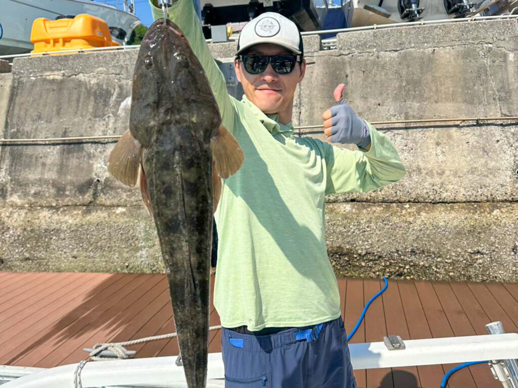 約65㎝の巨大マゴチを釣り上げたオーナー艇!あまりの大きさに思わず一枚パシャリ📷写真からもその迫力が伝わってきますね。巨大マゴチGET、おめでとうございます!