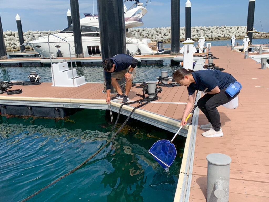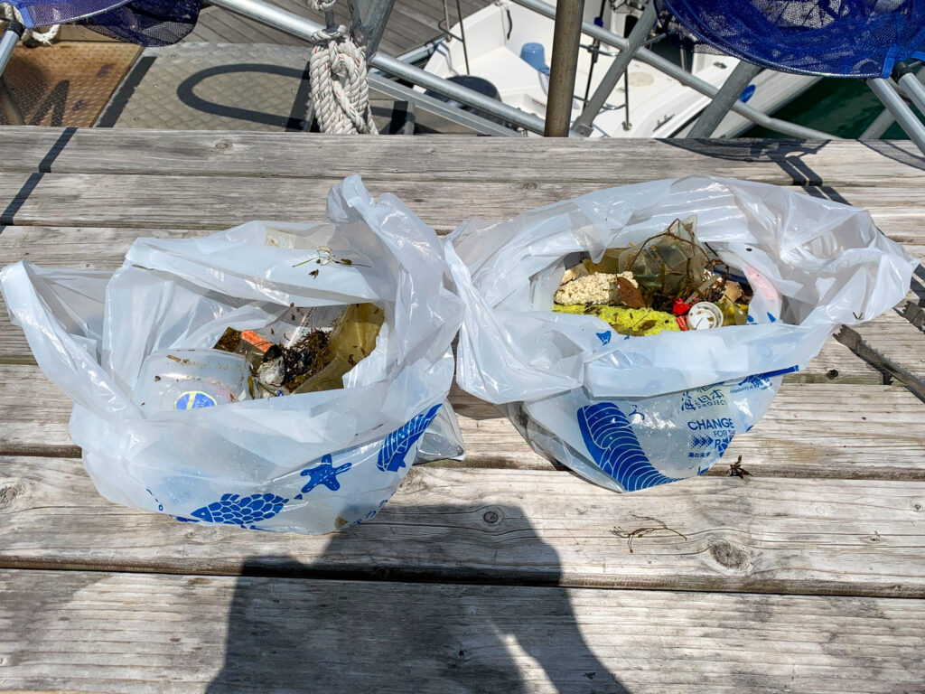 最終日には多くの方にご参加いただき、マリーナの隅々まで桟橋をキレイにすることができました✨参加者の皆さまは、桟橋の下を泳ぐ魚を眺めながら、楽しんでゴミ拾いに取り組んでくださいました。