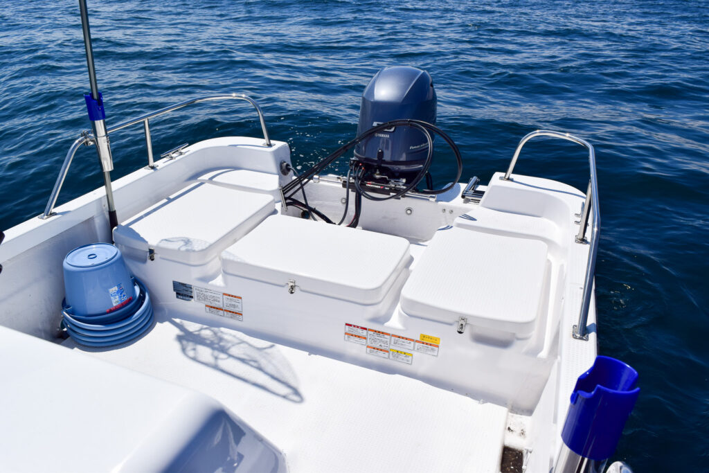 今月(7月1日)より、レンタル艇【BAYFISHER20/あまも】が新艇に入れ替わりました🚤!コンパクトながら前後のデッキが広く、快適にご利用いただける「新艇あまも」。稼働初日には、ご利用いただいたお客様とともに進水式も行いました!