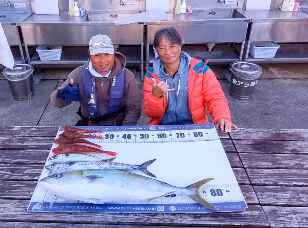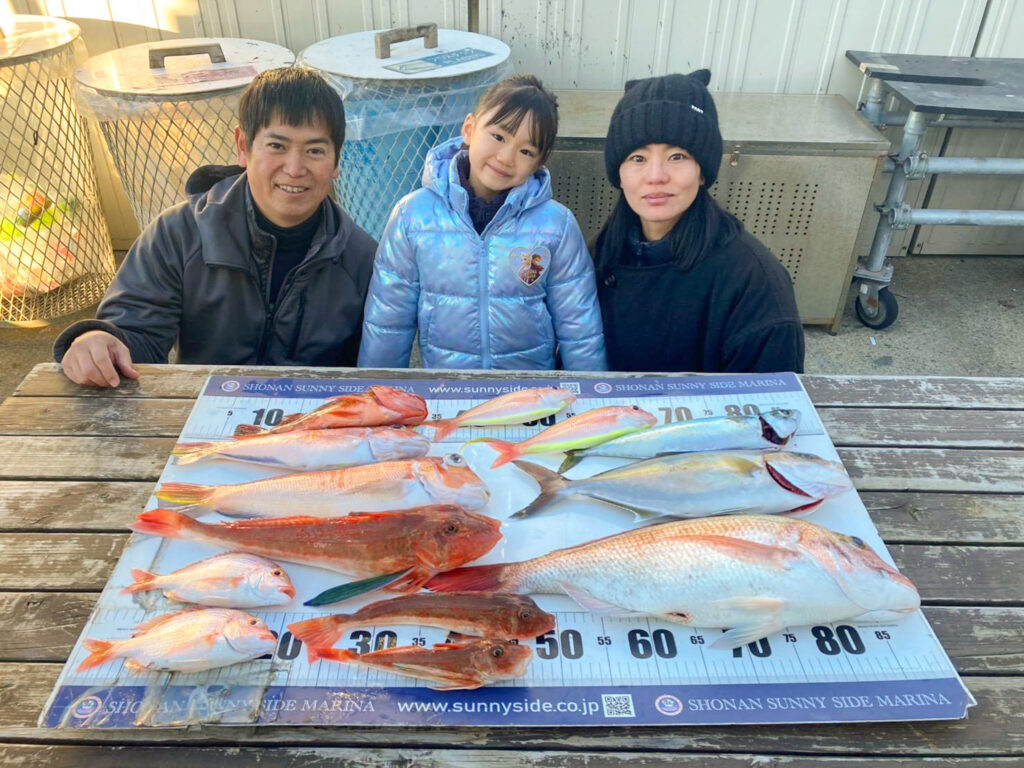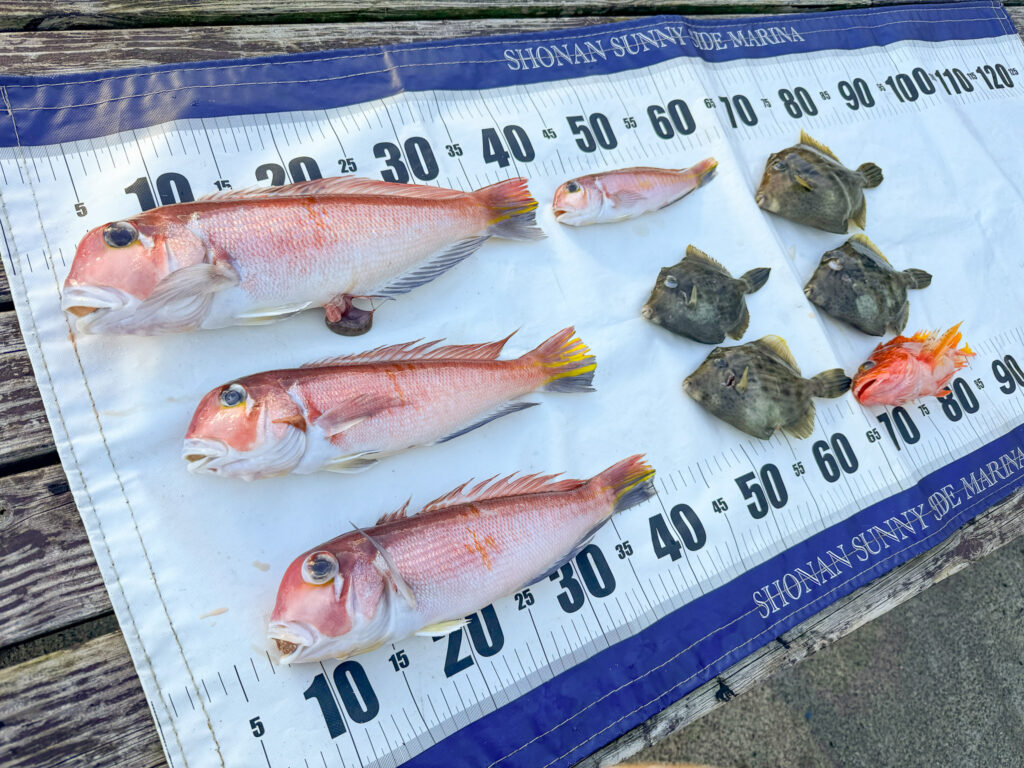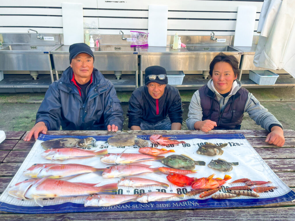2025年最後の釣行では、50cmのアマダイをはじめ、コウイカやカワハギなど、竿納めにふさわしい見事な釣果となりました。「狙ったものがすべて釣れた」と、息子様と大変喜ばれていらっしゃいました。年末にアマダイがたくさん釣れ、最高の締めくくりとなりましたね。おめでとうございます!