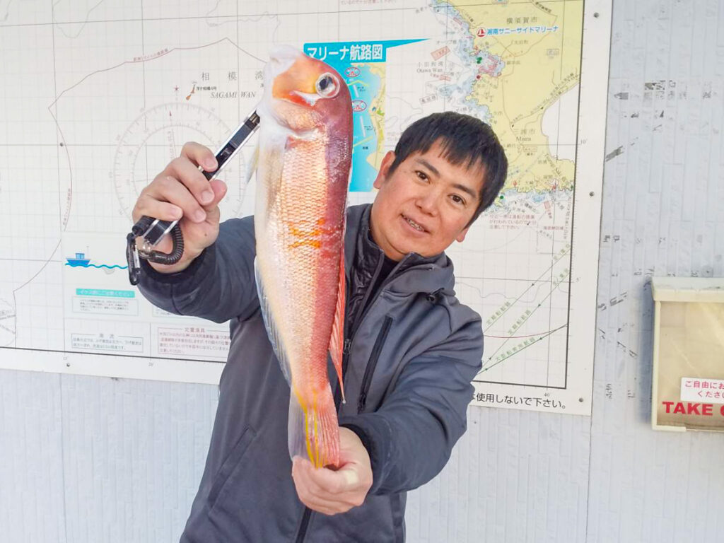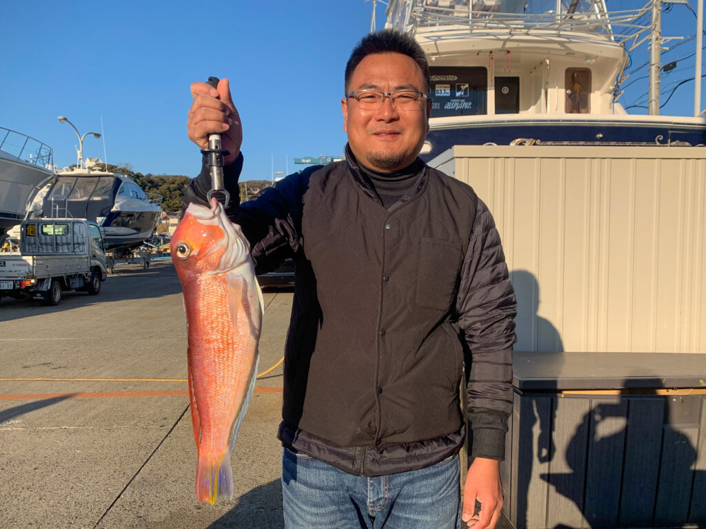 こちらは48cmの大型シロアマダイを見事キャッチ!年始早々、文句なしの素晴らしい釣果となりました◎『アマダイ釣りダービー』の「シロアマダイ BIG ONE」にもランクイン!幻の超高級魚GET、誠におめでとうございます。