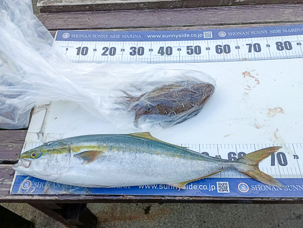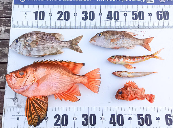 ゲスト様は今回が“釣り初挑戦”とのことでしたが、いろいろな魚が釣れてとても嬉しそうでした♪チカメキントキは秋谷沖で、その他の魚は亀城根沖で釣れたそうです。特にチカメキントキは35cmの良型!なかなかのサイズが上がりました。楽しい釣りができたようで何よりです◎