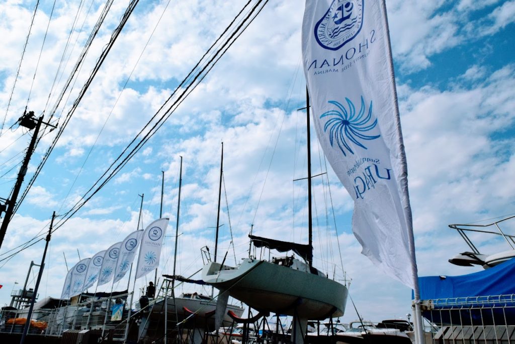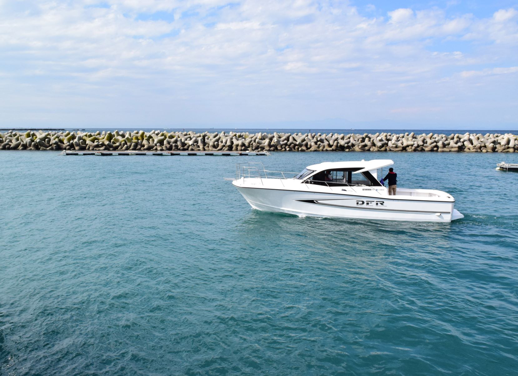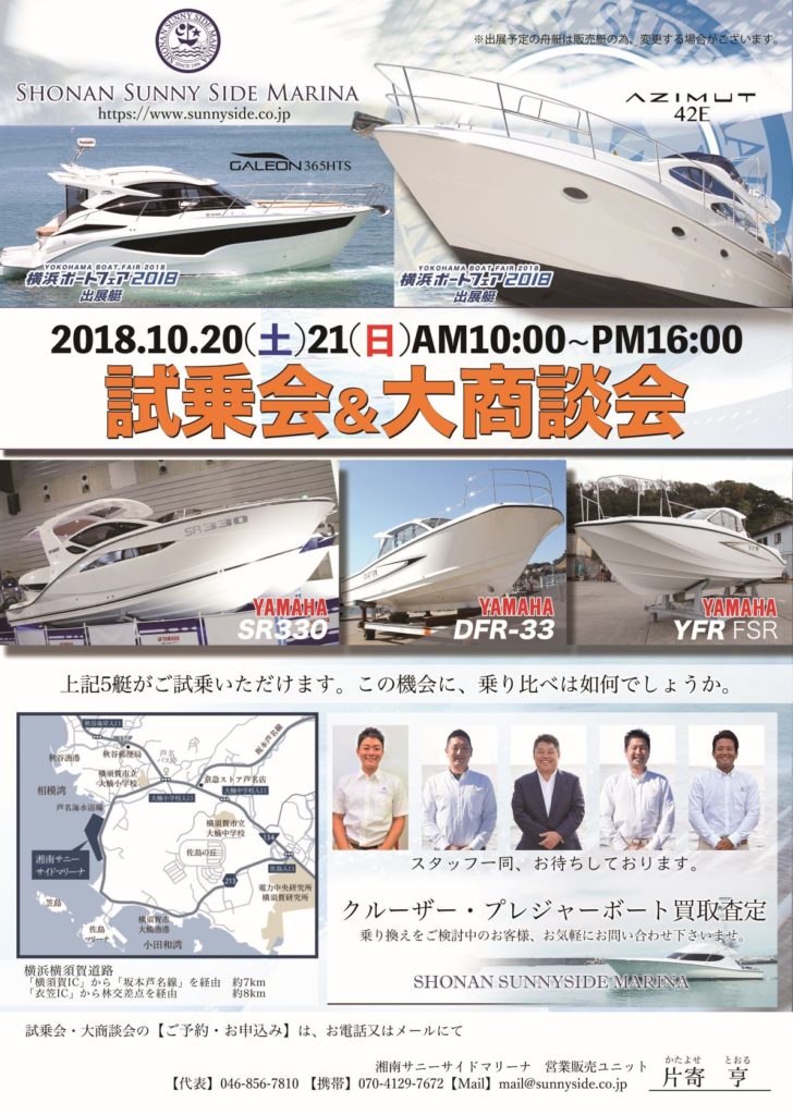 ボートフェアに出展した「YAMAHA DFR-33」、「Sea-Ray 315 SUNDANCER(2004)」の他、