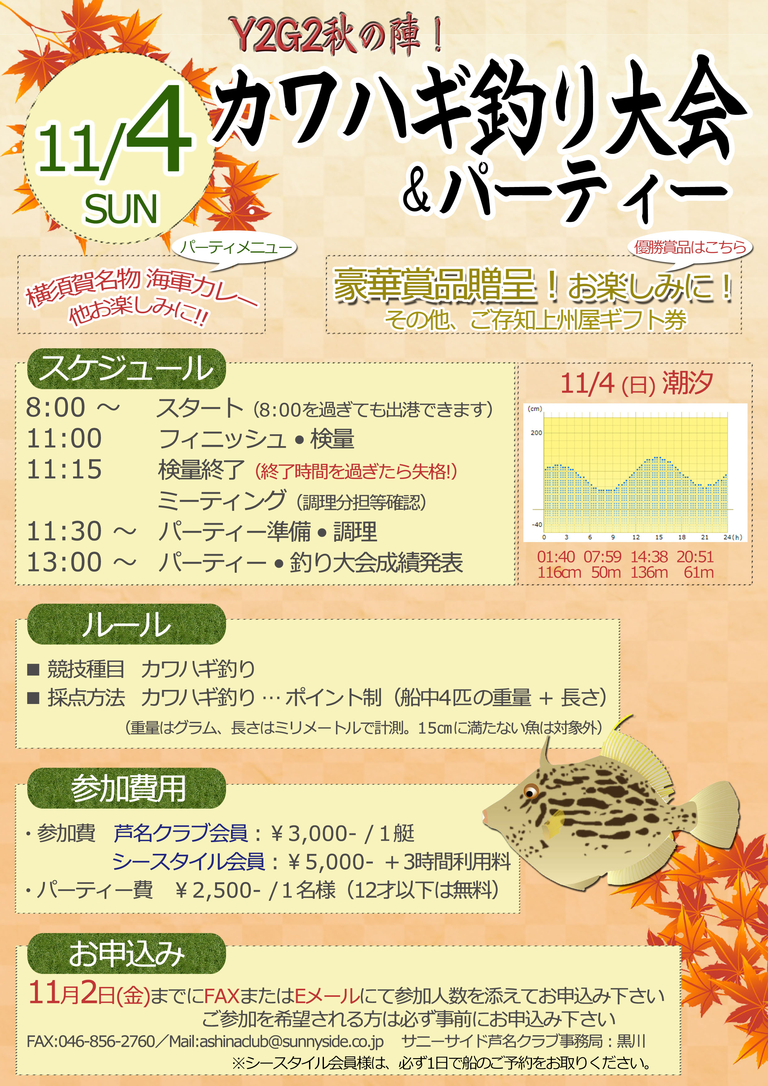 「Y2G2秋の陣!カワハギ釣り大会&パーティー」開催のお知らせ!