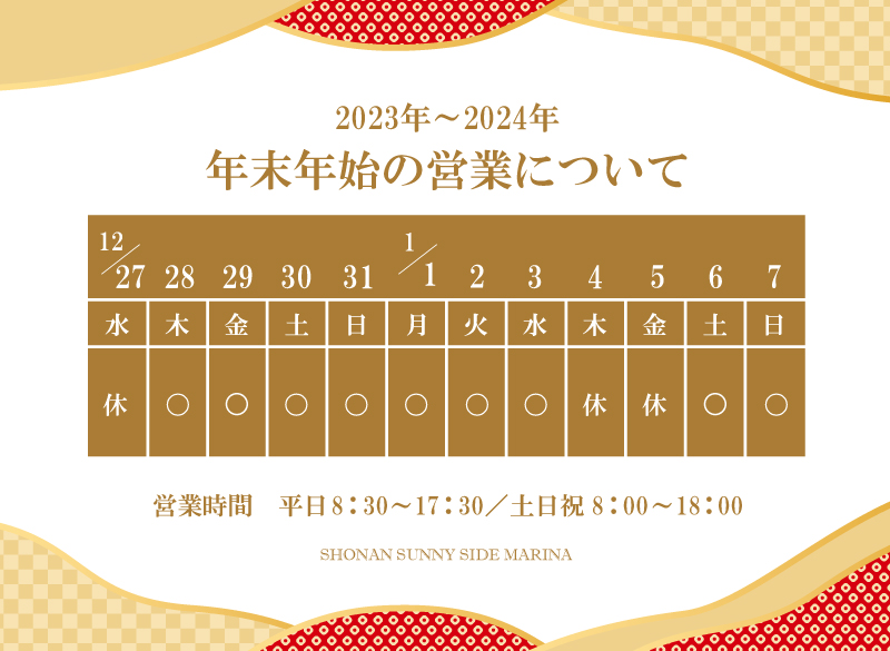 当マリーナは2024年1月3日まで休まず営業しております。