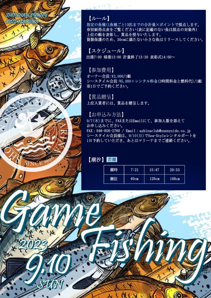 シースタイル会員様は、9/10(日)でSea-Styleレンタルボートを1日予約していただき、あとはマリーナまでご連絡ください。
