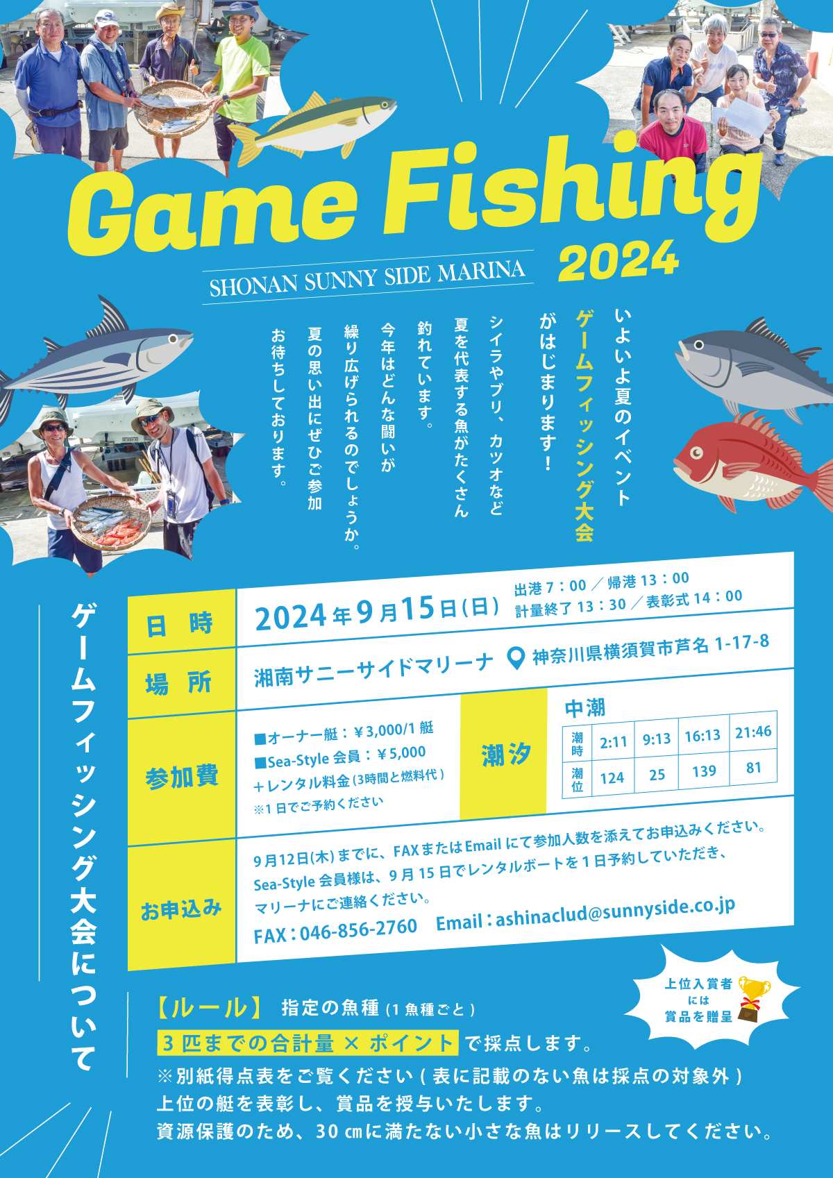 いつも湘南サニーサイドマリーナの釣り大会にご参加いただき、誠にありがとうございます。