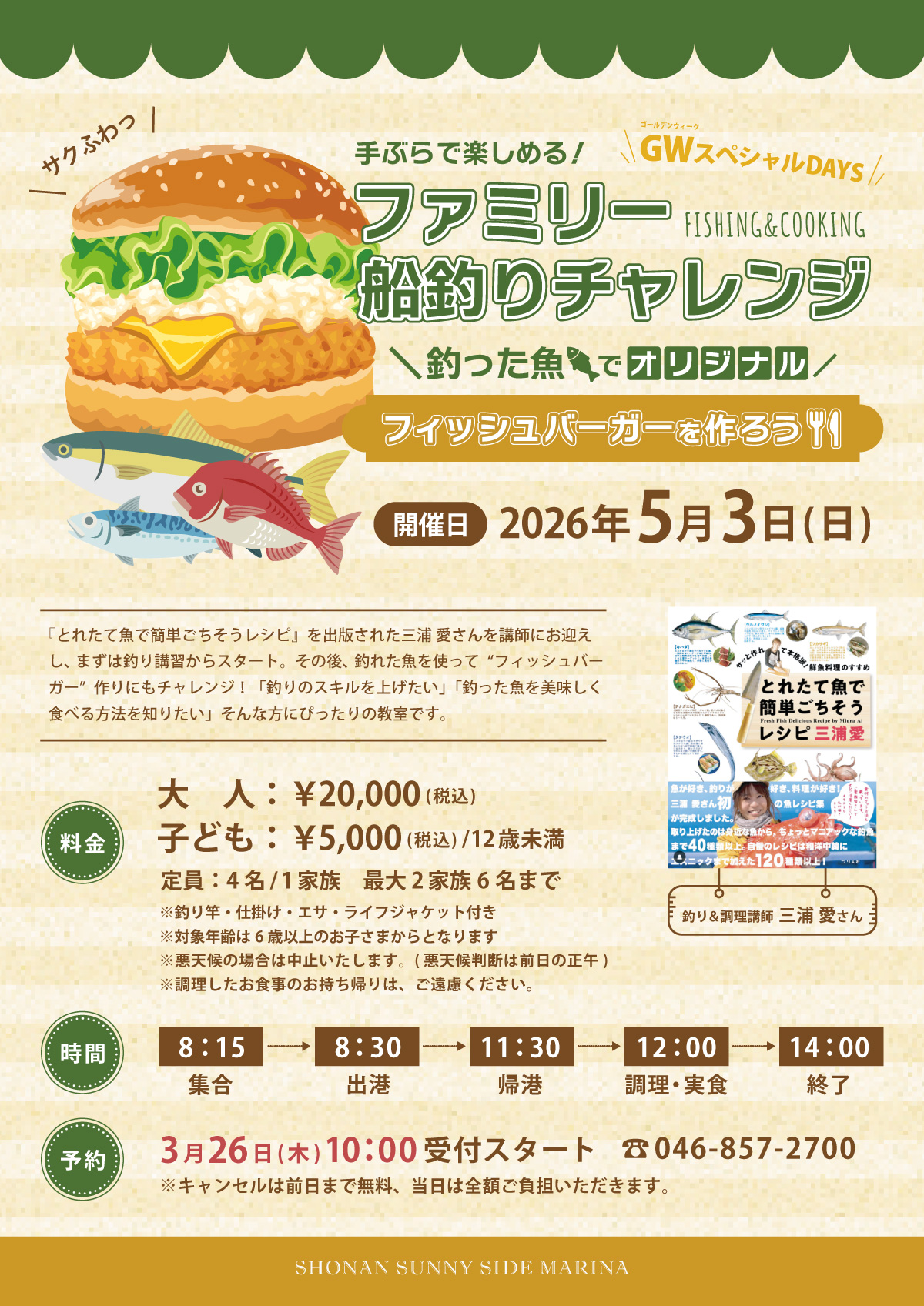 【GWスペシャルDAYS】1日目のイベントは、「ファミリー船釣りチャレンジ!釣った魚でオリジナルフィッシュバーガーを作ろう!」です。