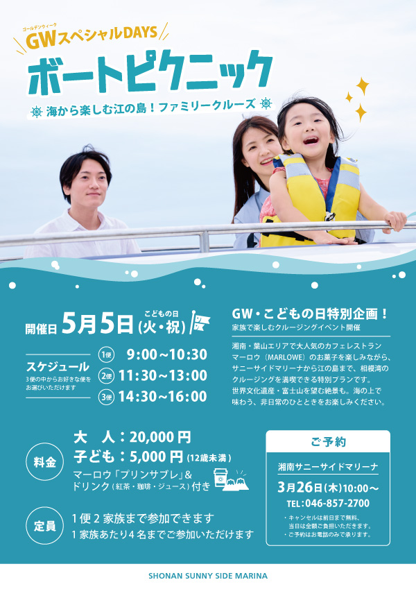 「ボートピクニック~海から楽しむ江の島!ファミリークルーズ~」です!