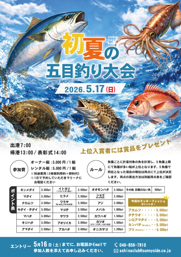 そこで今年も5月に「初夏の五目釣り大会」を開催いたします。