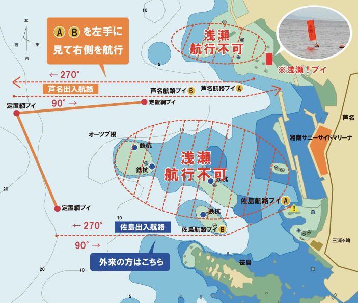 Aと記載されている旗【芦名航路ブイ A】と勘違いされますと、
