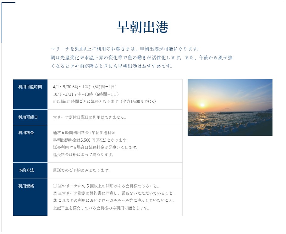 ※早朝出港利用規約を満たしている方が対象(マリーナを5回以上ご利用等)