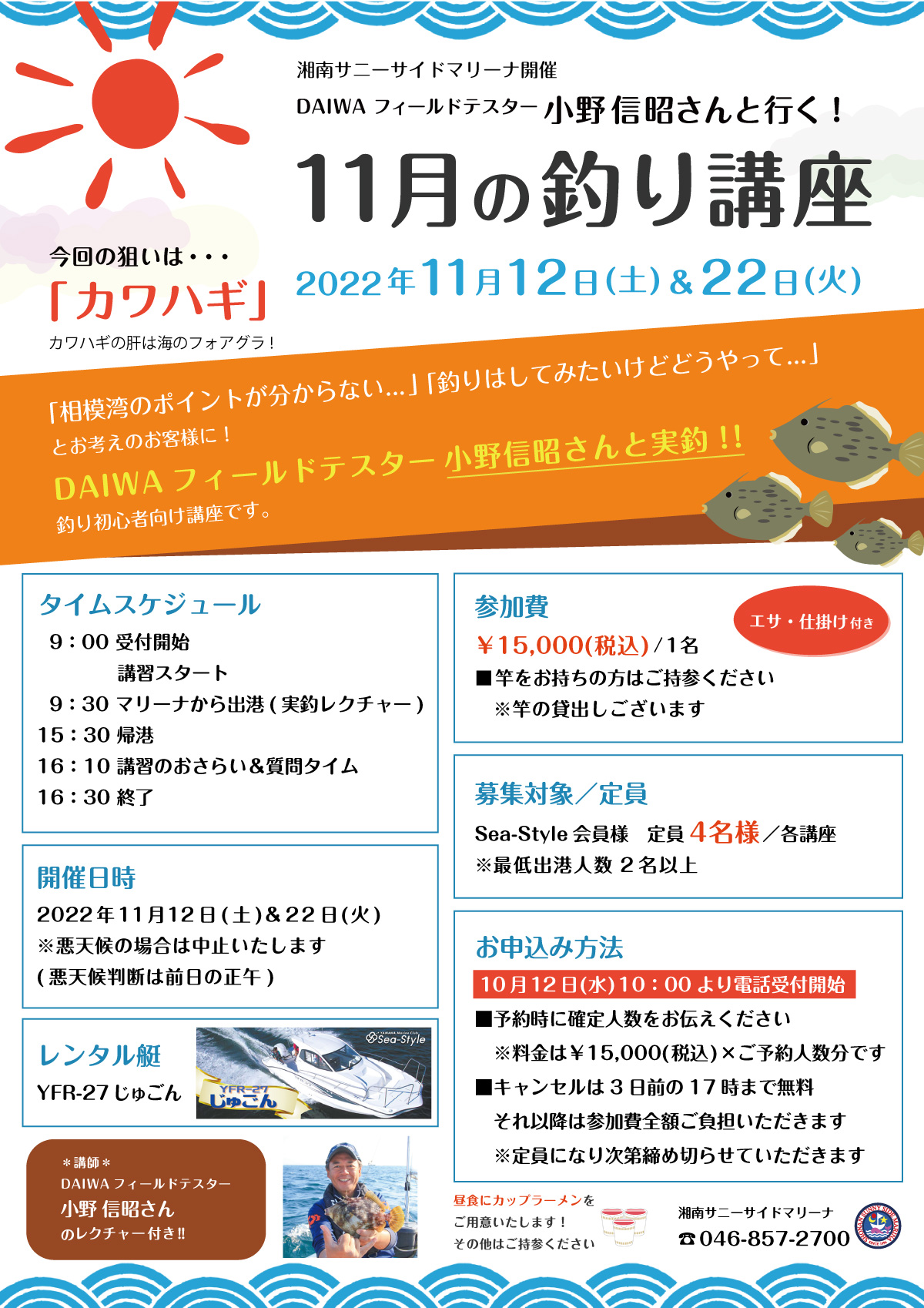 Sea-Style【11月の釣り講座】は11月12日(土)&22日(火)