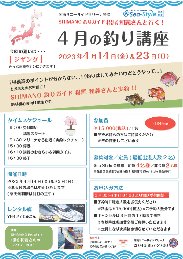 Sea-Style【4月の釣り講座】は2023年4月14日(金)&23日(日)