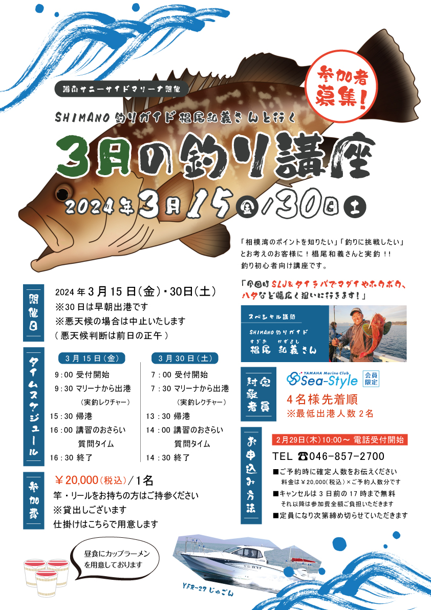 レンタルボート課より【3月の釣り講座】のお知らせです📣