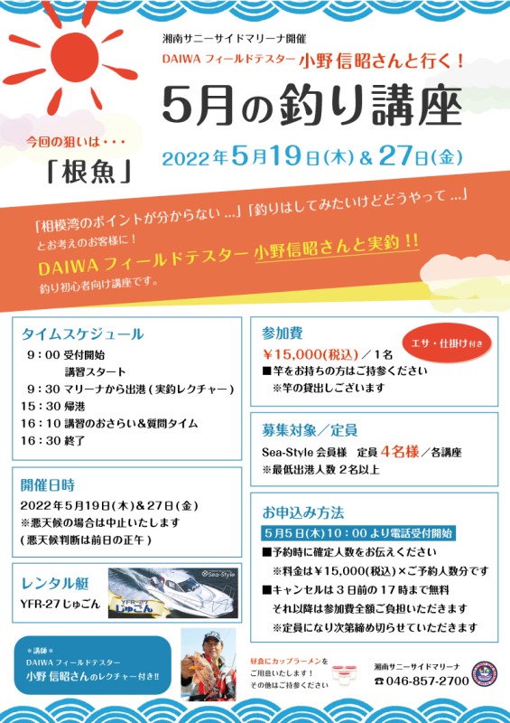 Sea-Style【5月の釣り講座】の開催が決定しました!!!!