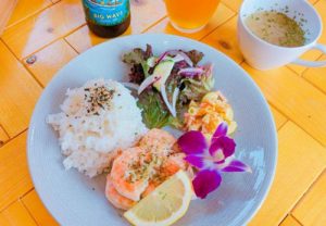 ガーリックシュリンプやフレッシュポケ、スペアリブなどハワイアン料理が楽しめます。