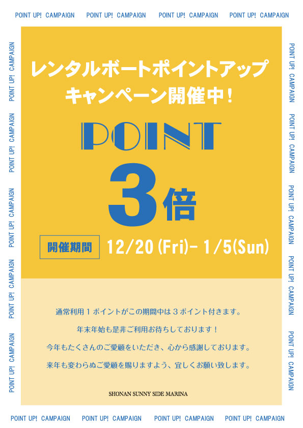 ◆湘南サニーサイドマリーナ レンタル艇 ポイントUPキャンペーン◆