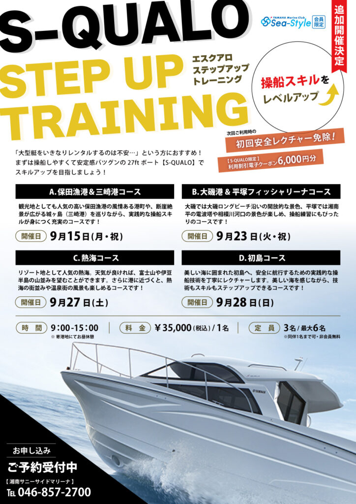「大型艇をいきなりレンタルするのは不安…」という方におすすめです。まずは操船しやすくて安定感バツグンの27ftボート『S-QUALO』でスキルアップを目指しましょう
