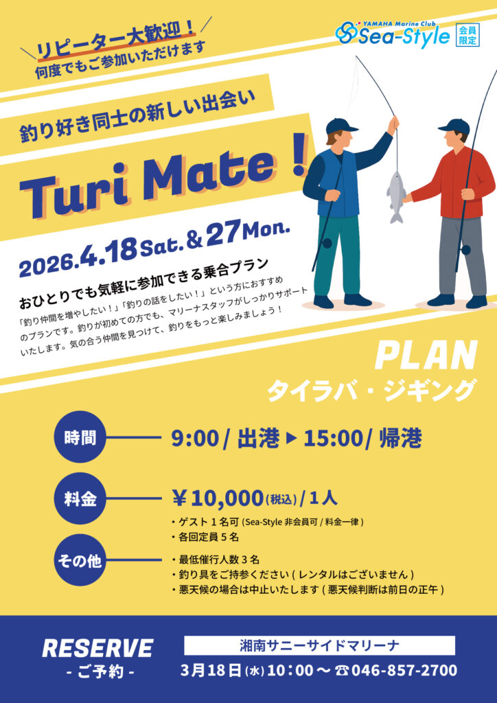 「釣り仲間を増やしたい!」「釣りの話をしたい!」という方におすすめのプランです。釣りが初めての方でも、マリーナスタッフがしっかりサポートいたします。気の合う仲間を見つけて、釣りをもっと楽しみましょう!