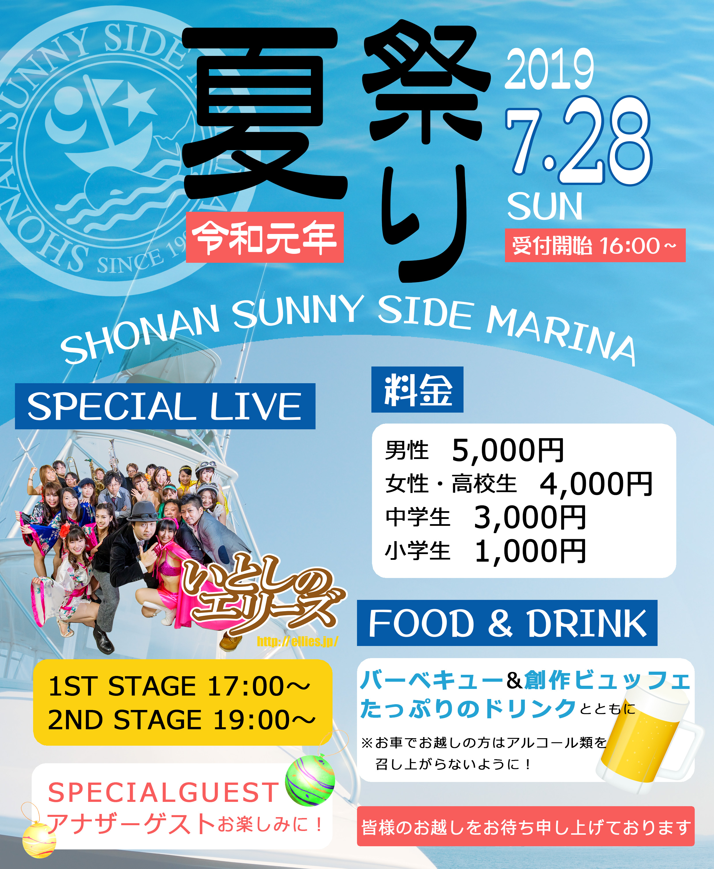 湘南サニーサイドマリーナ 令和元年 夏祭り を開催いたします。