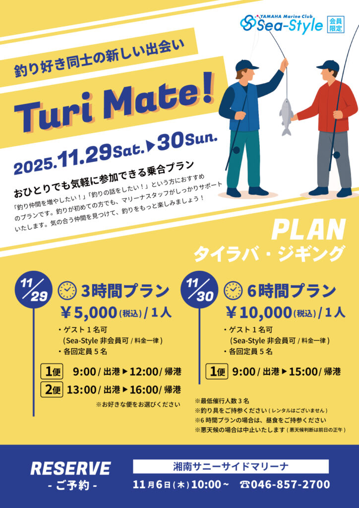 「釣り仲間を増やしたい!」「釣りの話をしたい!」という方におすすめのプランです。釣りが初めての方でも、マリーナスタッフがしっかりサポートいたします。気の合う仲間を見つけて、釣りをもっと楽しみましょう!