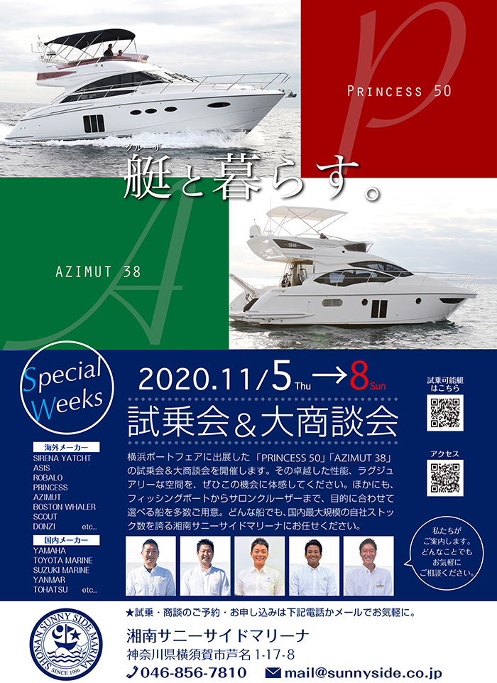 湘南サニーサイドマリーナからは「Princess50」「AZIMUT38」を出展します。