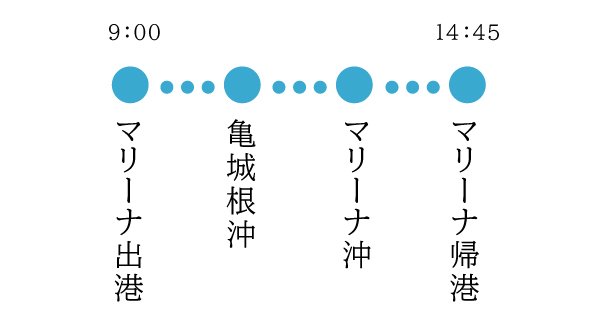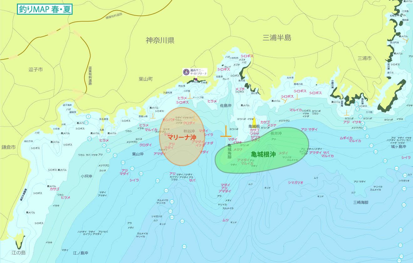 気軽に楽しめる釣りスポット、亀城根沖とマリーナ沖をご紹介します。「何を狙えばいいの?」「どこで釣れるの?」など、お困りの方のお役に立てれば嬉しいです。どちらのスポットも、マリーナからのアクセスが簡単で、釣り初心者でも気軽に楽しむことができます。ぜひ、亀城根沖とマリーナ沖で素敵な釣り時間をお過ごしください。