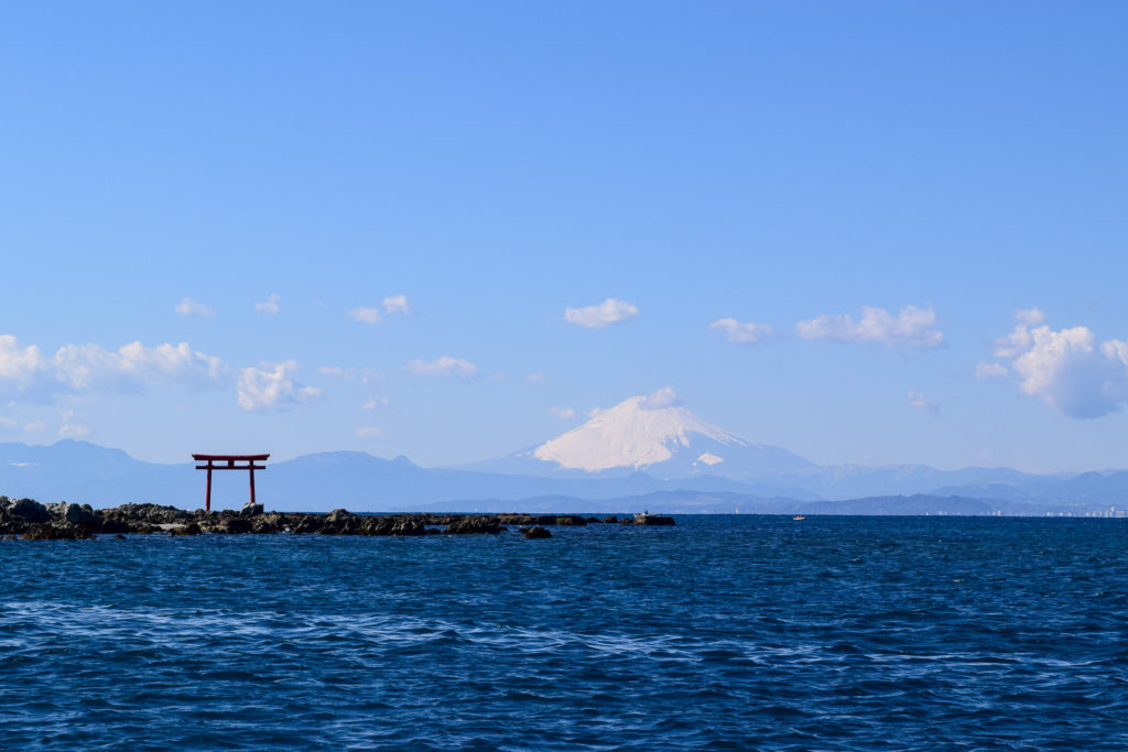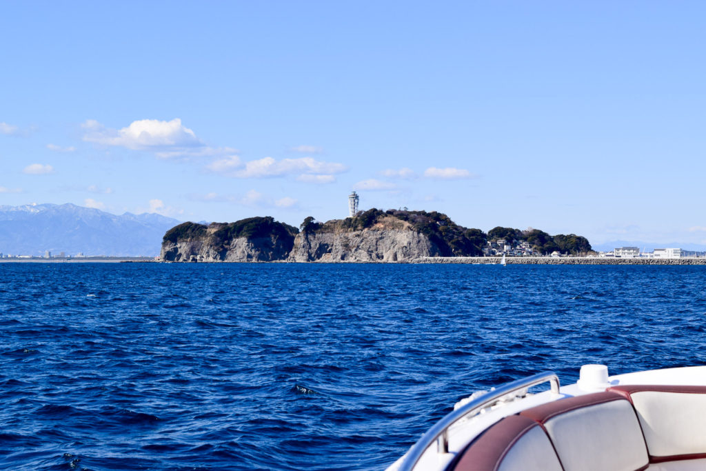 江ノ島は、島全体が観光スポットで、周囲には湘南エリアを代表するビーチが広がり、サーフィンやマリンスポーツを楽しむ人々で賑わっています。せっかく船で出港しているので、ぜひ海から江ノ島の景色を楽しんでみましょう!
