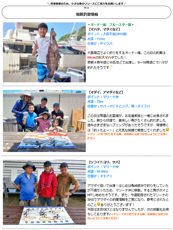 ※マリーナ沖で釣りをする際、定置網には近づかないようにご注意ください