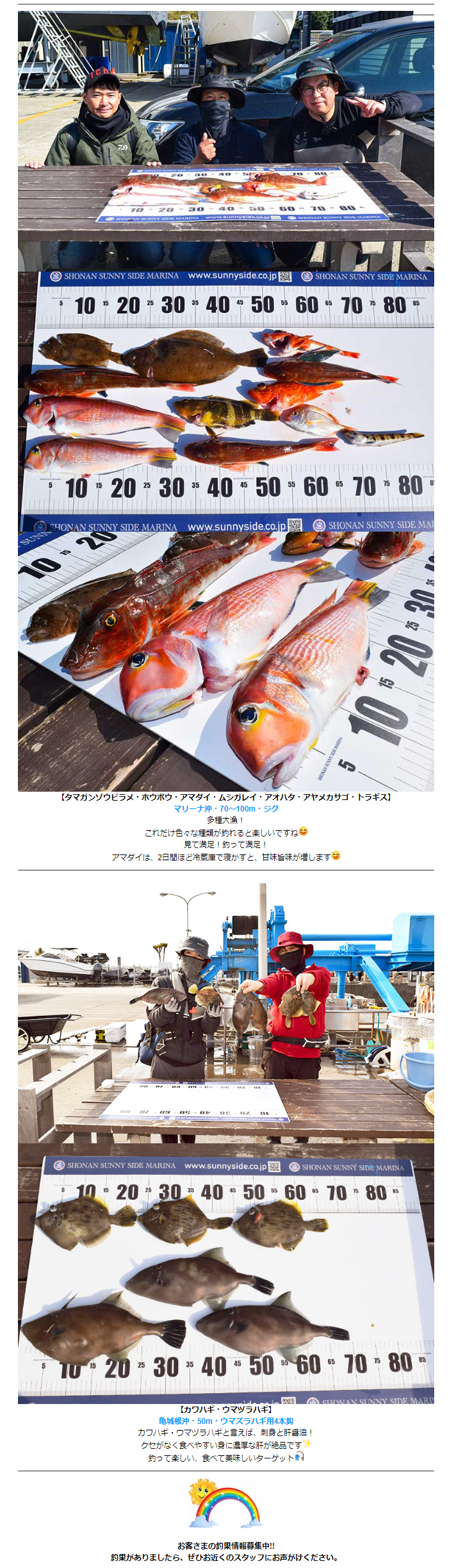 釣果情報/2023年3月 皆さまこんにちは ☆*゚ ゜゚*☆ 最近の釣果情報をお届けいたします ☆*゚ ゜゚*☆ 今週もマダイ・イトヨリ・ホウボウなどが続々と🎣 気になる最新釣果情報をお届けいたします!