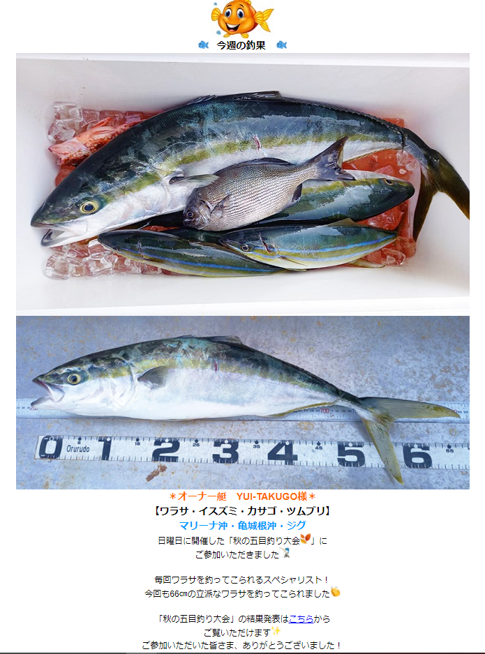 スタッフが投稿した最新釣果や、お客さまに投稿していただいた釣果を