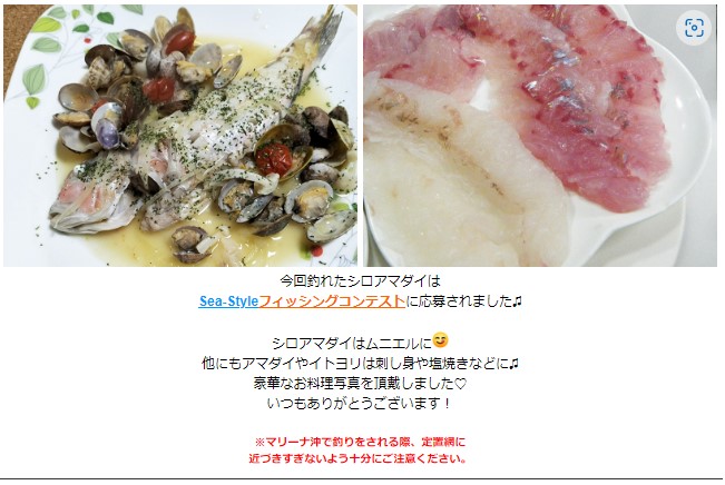 そのときの釣りの様子と、釣った魚の料理写真を頂戴しました♬